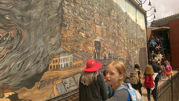 The next event took students along the mural showing the history of Central City with more questions and comments. They were getting the picture as the area grew with mining, there was a big fire, but the city rebuilt with rock this time and grew again.