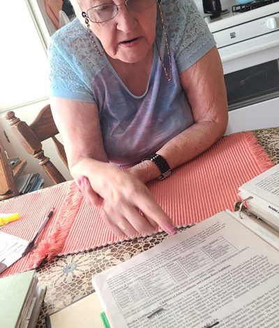 She gets more information about her genealogy from the Turning Back the Pages section. She found out about relatives who were caught during the prohibition, about an uncle who died as an infant, and stories about her dad. She clips them out and adds them to her ancestry records.